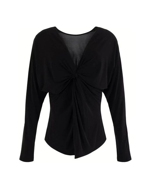 Upgrade je garderobe met deze Semicouture Viscose Jersey Blouse. Met een V-hals detail met knoop, lange kimono-mouwen en een regular fit, is deze blouse een must-have voor de moderne vrouw. Kleur: zwart