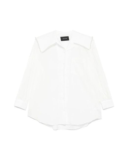 Upgrade je garderobe met deze witte Simone Rocha blouse met knoopsluiting aan de voorkant, borstzak, plooien, en knoopmanchetten, perfect voor de moderne vrouw. Kleur: wit