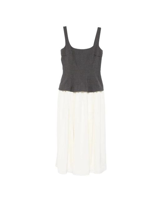 Square Neck Sleeveless Pleated Midi Dress in het zwart voor dames