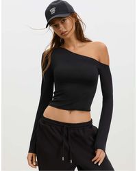 Ga naar ASOSTop van Stradivarius Effen model Model met blote schouders Lange mouwen Skinny-fit Kleur: bruin