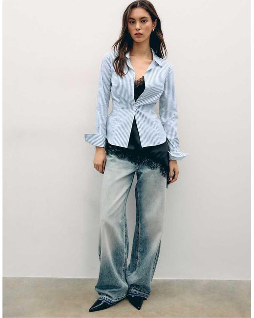 Basic Gestreept Aansluitend Overhemd in het wit voor dames