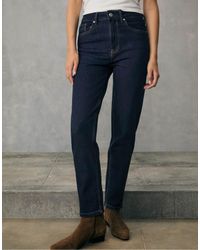Ga naar ASOSJeans van Stradivarius Regular mom pasvorm Hoge taille Riemlussen Met vijf zakken Merkpatch op de achterkant Kleur: blauw