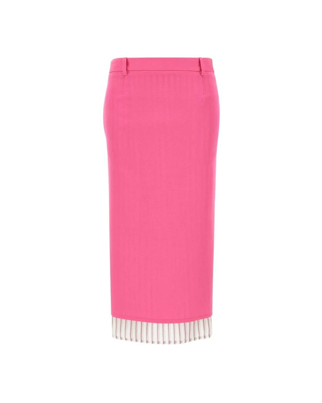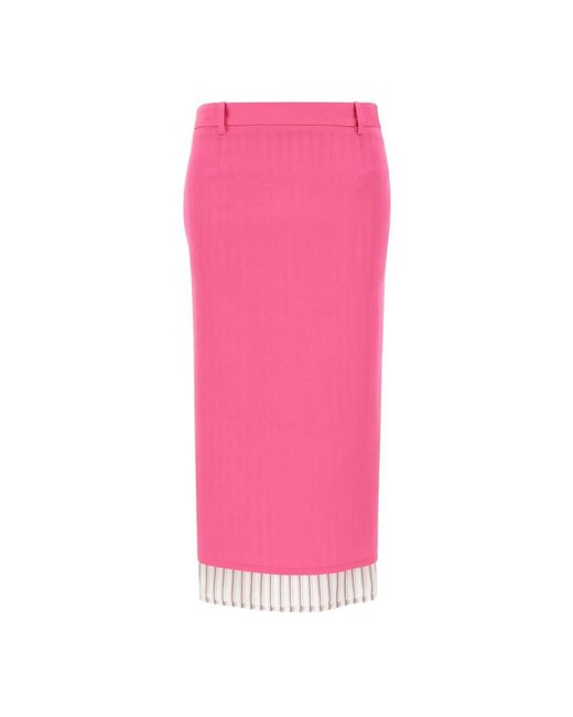 De Attico Striped-trim Midi Rok combineert een strak, recht silhouet met een kenmerkende gestreepte voering die net onder de zoom uitkomt. Vervaardigd in Italië van scheerwol, biedt het een gestructureerde vorm met vloeiende bewegingen voor een eigentijdse styling. Belangrijkste kenmerken: Neonroze | Scheerwol | Verborgen ritssluiting | Rechte snit | Gestreepte voering zichtbaar onder de zoom | Diepe split middenachter | Subtiele coupenaden | Afmetingen en pasvorm: Normale pasvorm | Valt normaal qua maat | Samenstelling en onderhoud: Hoofdmateriaal: 100% scheerwol | Voering: 100% cupro | Uitsluitend chemisch reinigen. Kleur: roze