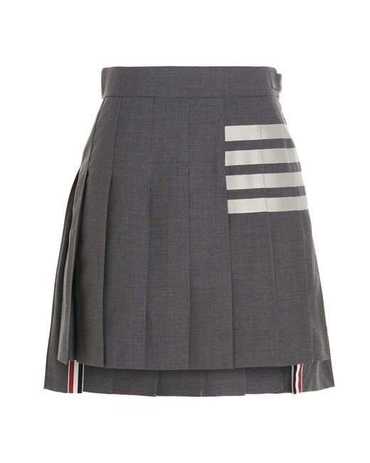 4 bar' wol, geplooide rok met zijkant en gestreepte cupro voering. Thom Browne. 4 bar 'rok. Trouw aan maat fit. Kleur: grijs