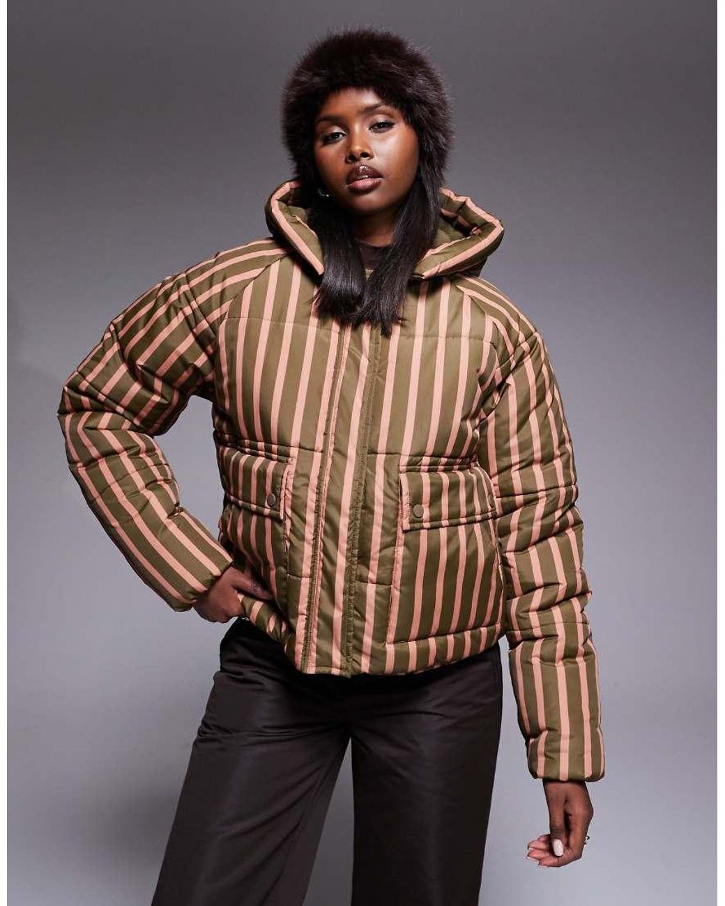 Jassen & Jacks van Threadbare Gestreept model Gewatteerd voor warmte Ritssluiting Praktische zakken Oversized pasvorm Kleur: roze