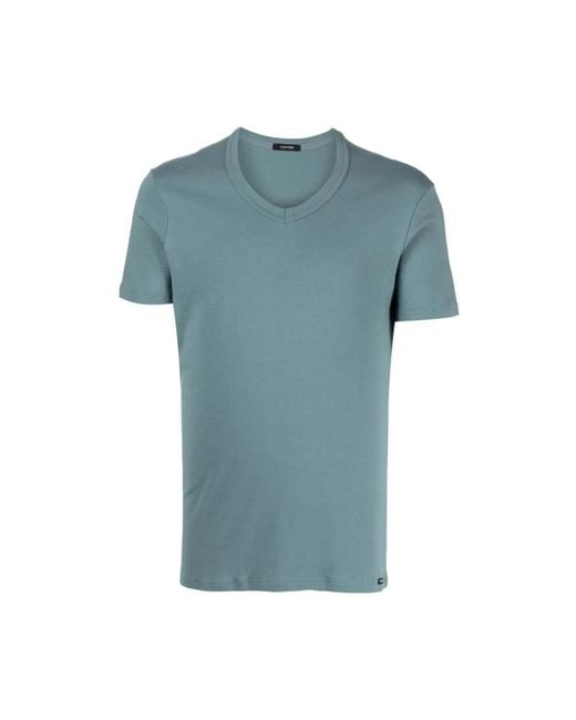 V-Hals Katoenen T-Shirt in het blauw voor heren