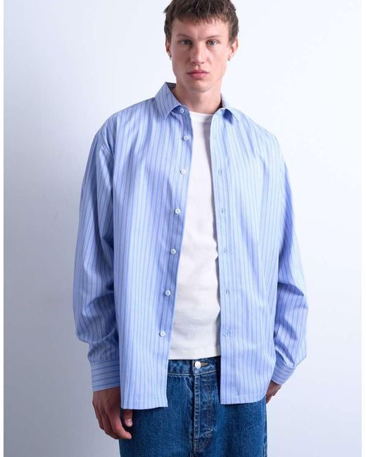 Overhemden van Topman Dit overhemd is gemaakt van geweven stof en heeft een streepdesign. Het overhemd heeft een wide spread boord, knoopbies, verlaagde schouders, manchetten met knopen en heeft een oversized pasvorm. Kleur: blauw