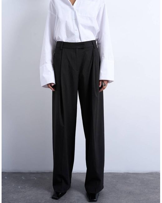 Broeken en leggings van Topshop Deze broek in een nettere stijl heeft een lage taille, riemlussen, gespdetails en plooi in het midden. Hij is gemaakt van een lichtgewicht geweven stof met een rechte pasvorm. Kleur: grijs