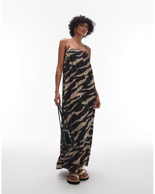 Maxi Jurk Van Kreukelstof Met A-Lijn En Zebraprint