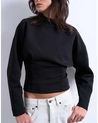 TOPSHOP Top Met Interlocknaden, Korsettaille En Lange Mouwen in het blauw voor dames