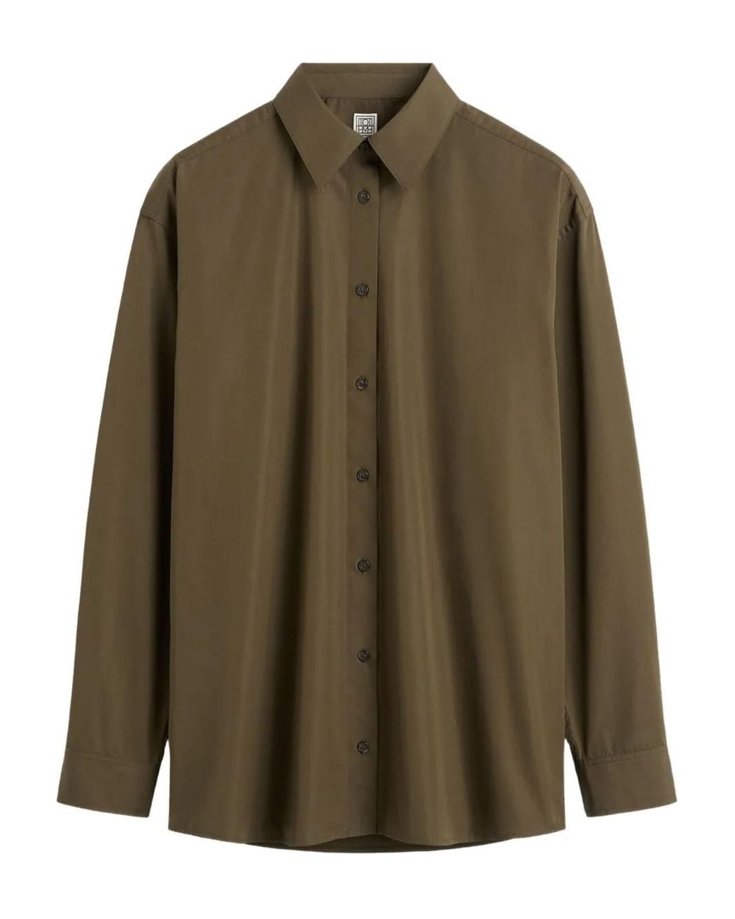 Olijfgroen biologisch katoen knoopsluiting lange mouwen klassieke kraag rechte zoom Size: 32. Gender: Female. Material:biologisch katoen. Kleur: groen
