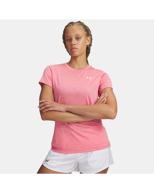 - Tech Twist Damesshirt Met Korte Mouwen Bittersweet Roze Wit