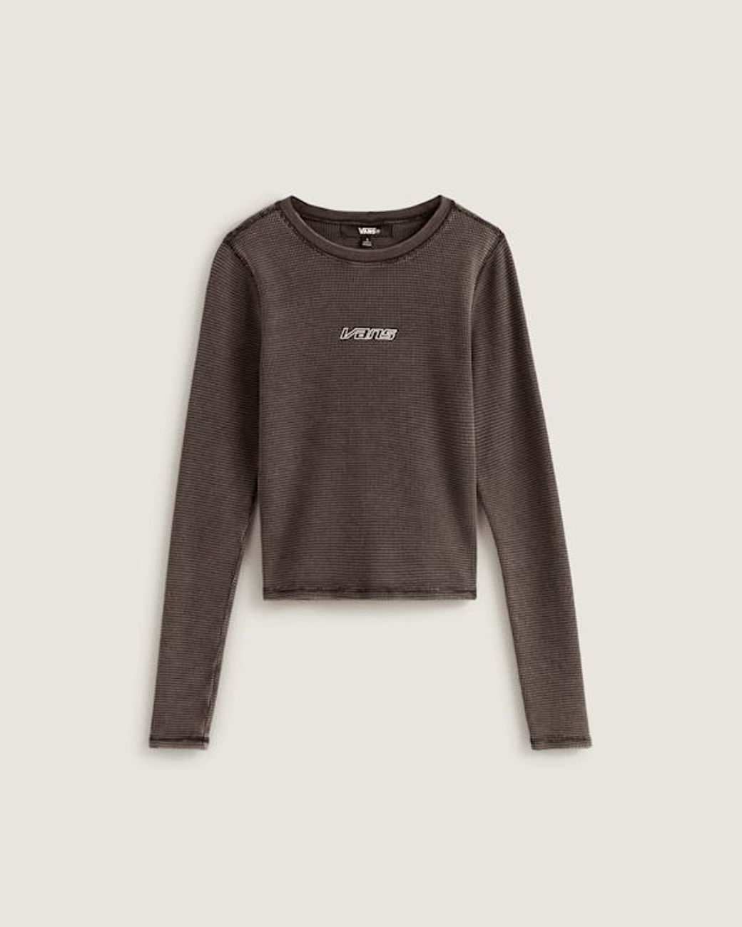 Deze korte Tee met lange mouwen voegt de relaxte Vans-stijl toe aan je dagelijkse looks. De gebreide thermische stof met mineralwash-afwerking zorgt voor een subtiele textuur, terwijl de slanke pasvorm en de korte lengte een modern silhouet creëren. Met een vleugje stretch en het klassieke Vans-logo is dit een veelzijdig item dat gemakkelijk te combineren is met een broek met een hoge taille, voor een moeiteloos coole look. Kleur: bruin