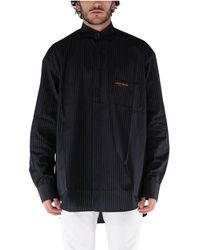 Ga naar FARFETCHLichtblauw/zwart/wit katoen popeline textuur gelaagd design knoopsluiting aan de voorkant gespreide kraag verlaagde schouders lange mouwen verticale strepenprint contrasterende afwerking opgestikte borstzak geborduurd logo op de borst afgeronde zoom Size: S. Gender: Male. Material:katoen. Kleur: wit