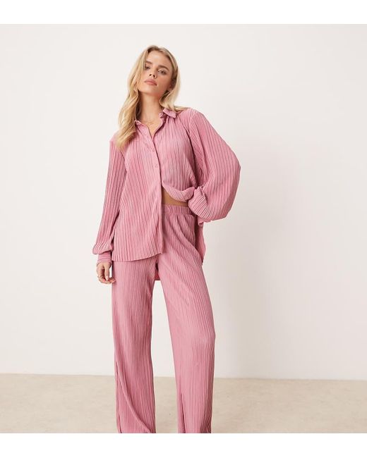 Plissé Broek Met Wijde Pijpen in het roze voor dames