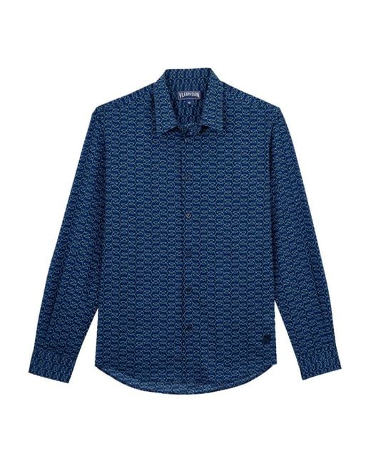Katoenen Shirt Met Visnet-Print in het blauw voor dames