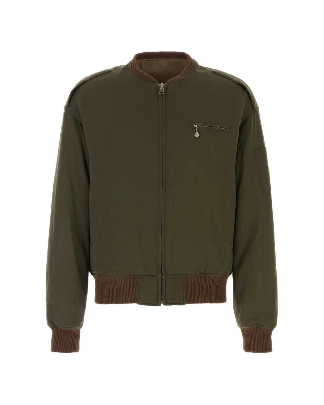 Olijfgroen wolblend gewatteerd ritssluiting geribbelde zoom geribbelde manchetten Size: II. Gender: Male. Material:wol/linnen/vlas/wol/linnen/vlas/Down/veer. Kleur: groen