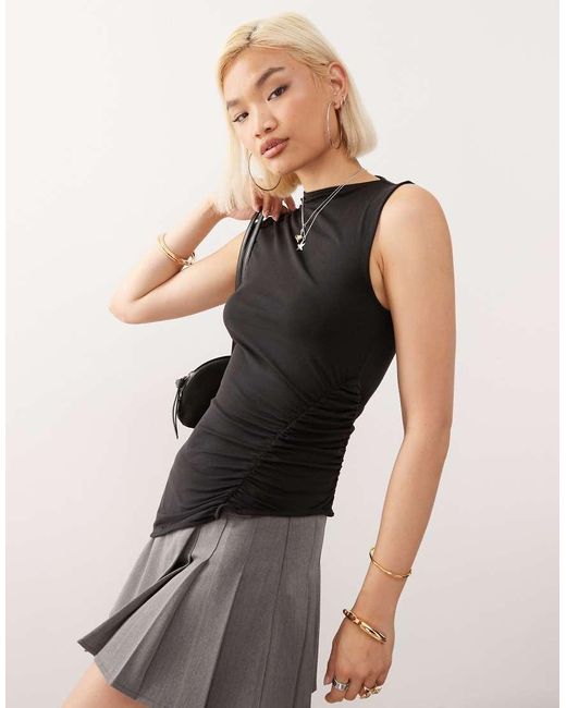 Top van Weekday Hooggesloten hals Mouwloos model Asymmetrische zoom Met gerimpeld effect aan de zijkant Regular fit Kleur: zwart