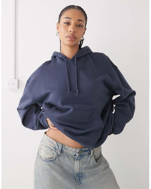Hoodies & Sweatshirts van Weekday Capuchon met trekkoord Lange mouwen Kangoeroezak Geribbelde boorden Regular fit Kleur: blauw