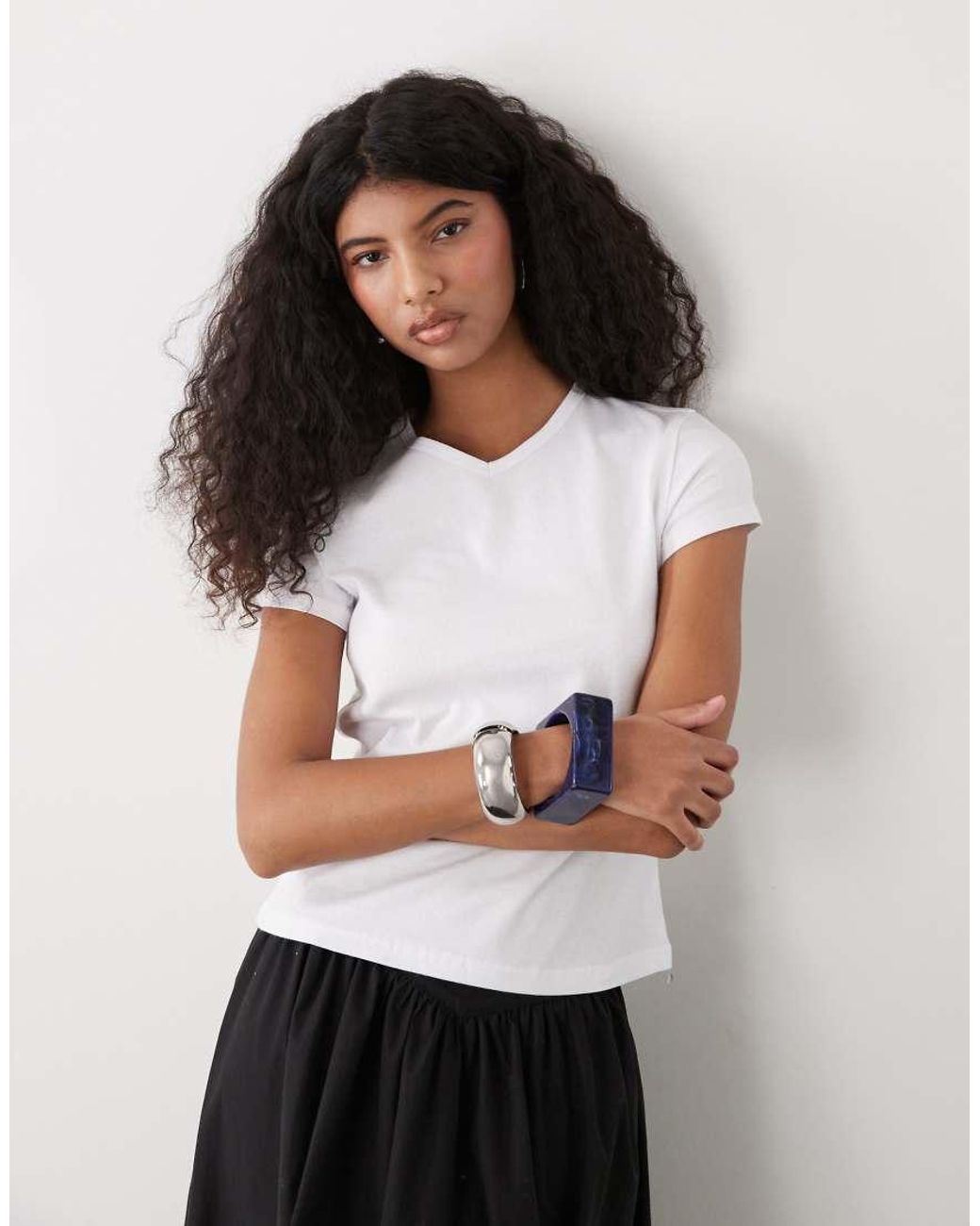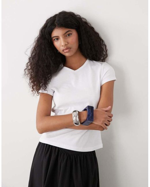 Top van Weekday V-hals Korte mouwen Slim-fit Kleur: wit