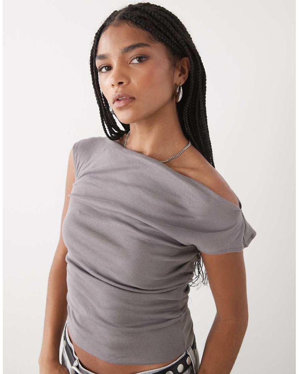 Top van Weekday Gedrapeerde halslijn Gekapte mouwen Rimpelingen opzij Regular fit Kleur: grijs