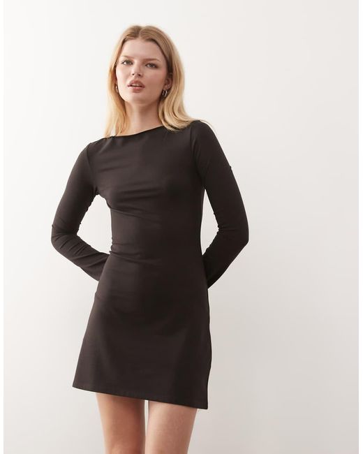 Mini Jurk Met Boothals En Lange Mouwen in het zwart voor dames