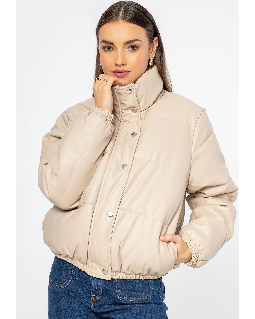 - Puff Jas Van Eco-Leer, Lichtbeige