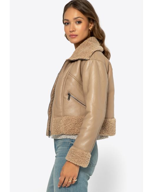 Korte Jas Met Bont, Eco-Leer in het naturel voor dames