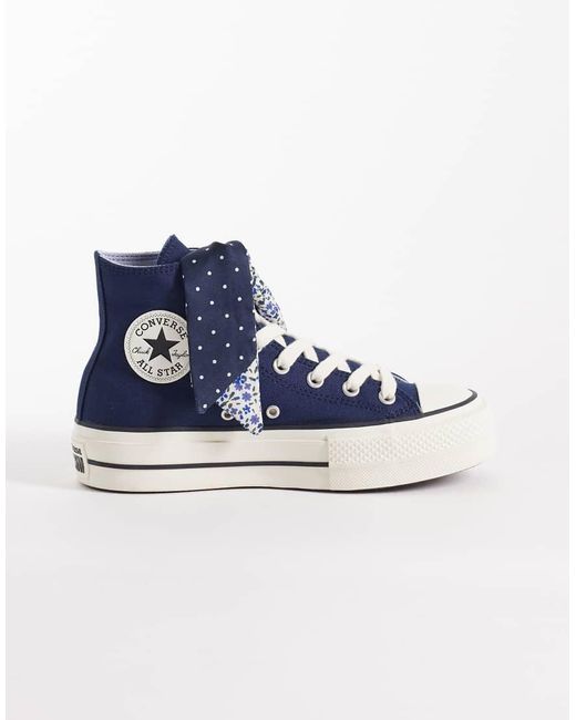 Schoenen van Converse Hoog model Sluit met veters Kenmerkende Converse All Star-branding Contrasterende oversized strik Gevulkaniseerde rubberen neus en loopzool Rubberen Archival-taping Zool met profiel Kleur: blauw