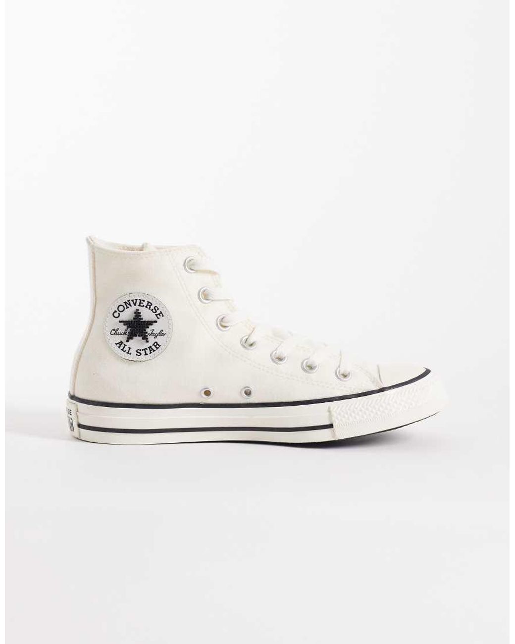Schoenen van Converse Hoog model Sluit met veters Kenmerkende Converse All Star-branding Oogjes aan de binnenkant van de voet voor ventilatie Gevulkaniseerde rubberen neus en loopzool Met kralen Geometrisch gripprofiel Kleur: wit