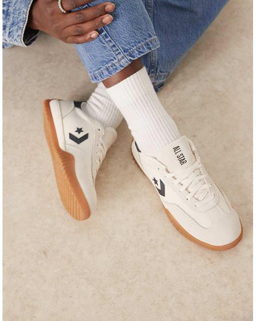 Schoenen van Converse Model met laag profiel Sluit met veters Met de bekende logo's en merkstijl van Converse Gumzool Gripprofiel met textuur Kleur: naturel