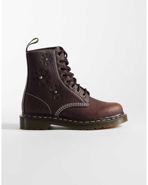 Schoenen van Dr Martens AirWair-lusje om gemakkelijk aan en uit te trekken Ritssluiting aan de voorkant Verstelbare bandjes Bloemendetails in reliëf Kenmerkend Dr Martens-logo Contrasterende stiksels Ronde neus Dikke zool Zool met profiel Kleur: bruin
