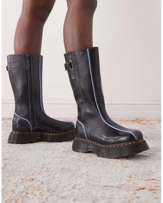 Schoenen van Dr Martens Kniehoge stijl Ritssluiting aan de zijkant Contrasterende stiksels Kenmerkend Dr Martens-logo Ronde neus Dikke zool Zool met profiel Kleur: zwart