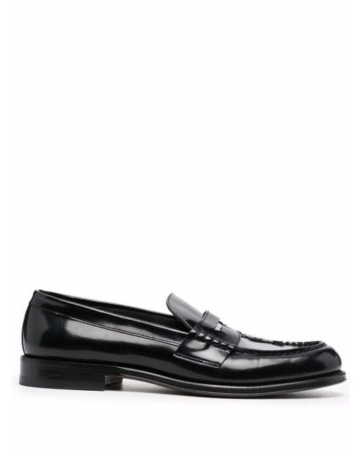 Glanzende afwerking, amandelvormige neus, penny slot, binnenzool met logo en platte leren zool. Materiaal: kalfsleer. Size: 45. Gender: Male. Material:kalfsleer/kalfsleer/kalfsleer. Kleur: zwart