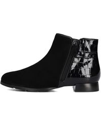 Ga naar MiintoProfiteer van de beste deals! Elegante enkellaarsjes voor dames van Hassia. Deze zwarte suède enkellaarsjes hebben een rits aan de binnenkant en een stijlvolle gespband aan de buitenkant. Het interieur is bekleed met