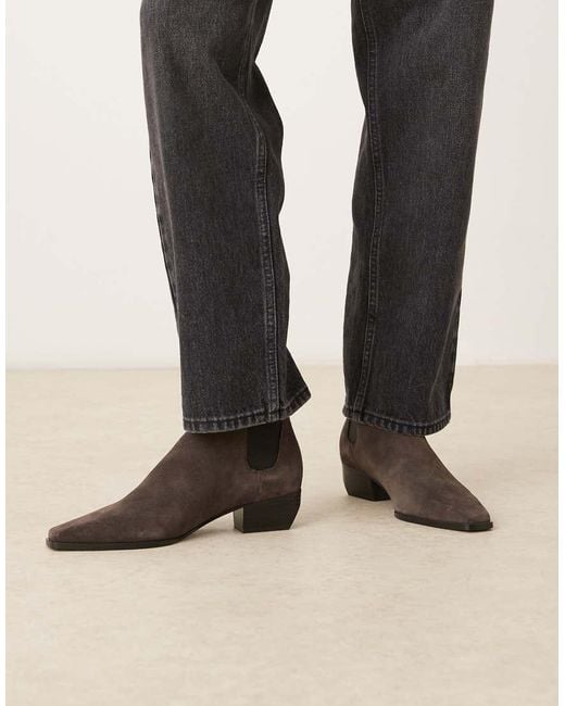 Western Enkellaarzen Van Suède Met Vierkante Neus En Lage Hak