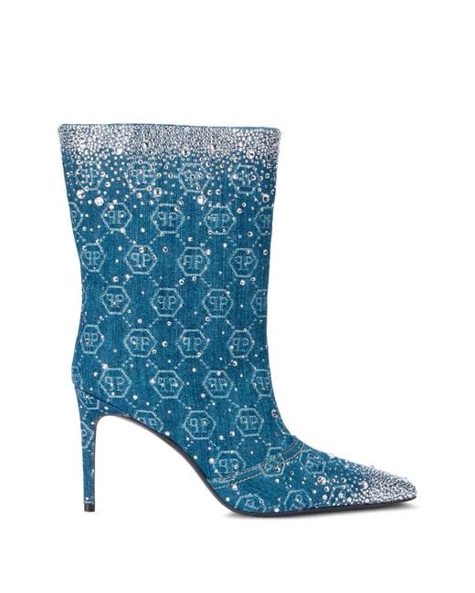 Denim Laarzen Met Stras En Monogram in het blauw voor dames