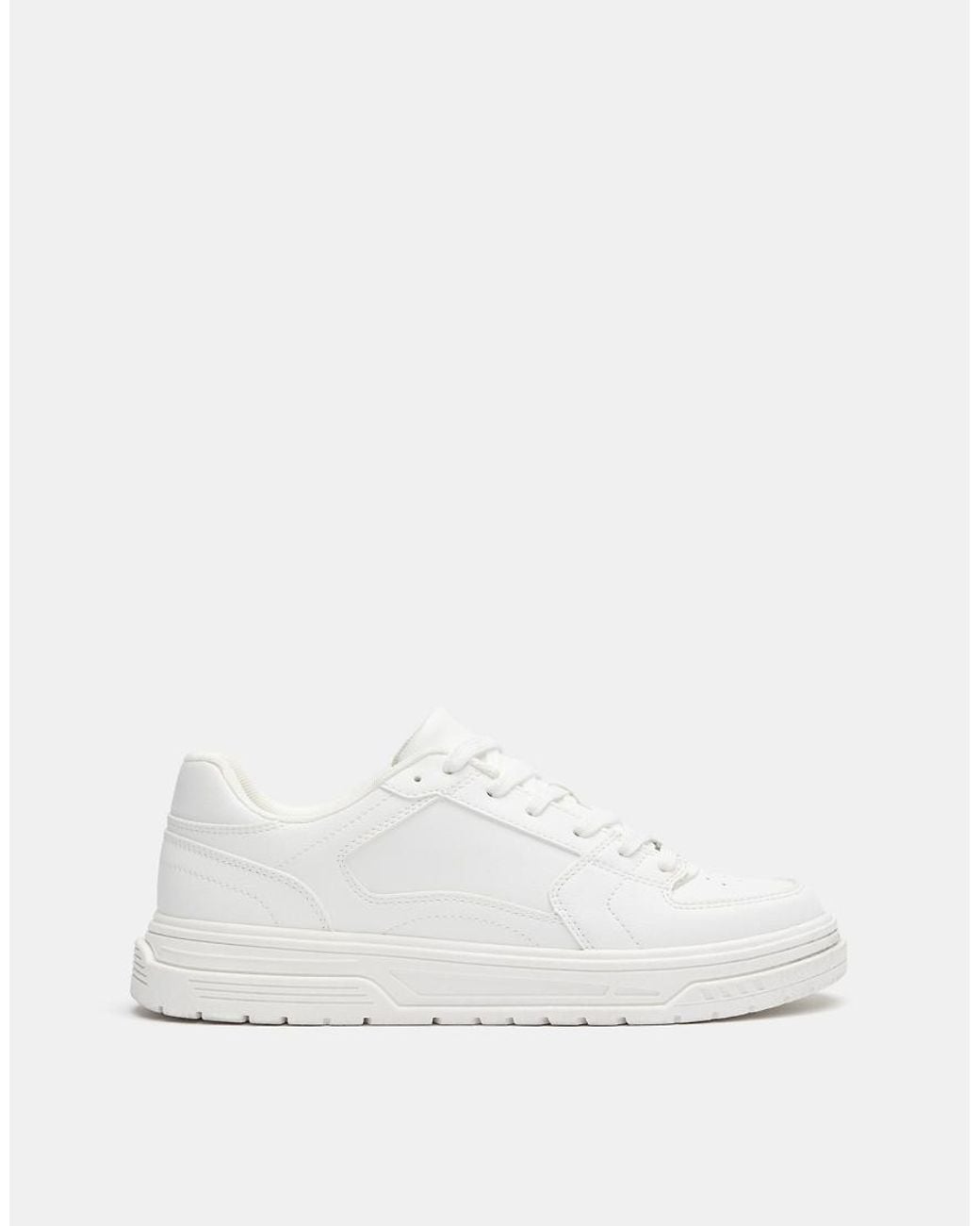 Schoenen, laarzen en sneakers van Pull&Bear Model met laag profiel Sluit met veters Gewatteerde tong en kraag Metalen detail Met gaatjes voor ventilatie Loopzool van slijtvast rubber Gripprofiel met textuur Kleur: wit