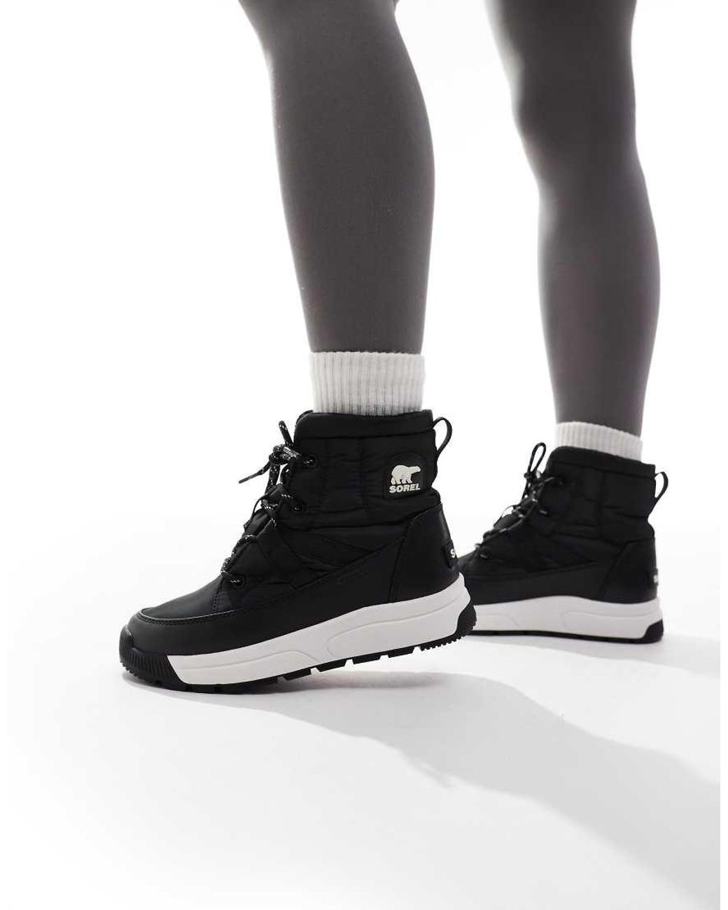 Schoenen van Sorel 200g isolatie Uitneembaar zacht PU-achtige EVA-voetbed met microfleece bedekking Met treklusje aan achterkant om makkelijk aan te trekken Sluit met veters Rubberen buitenzool Zool met profiel Kleur: zwart