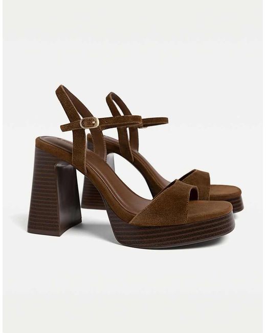 Schoenen van Stradivarius Enkelbandje Gespsluiting Blote tenen Hoge blokhakken Kleur: bruin