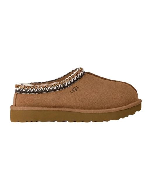 De UGG Tasman II Mules combineren scaosciata lederen bovenwerk met een suikerriet EVA-zool voor gemakkelijk instapcomfort en dagelijks gebruik. Ontworpen voor snel aan- en uittrekken, combineren ze slippercomfort met een casual, verfijnde look. Belangrijkste kenmerken: Beige | Scaosciata leder | Instapmodel | Suikerriet EVA-zool | Ronde neus | Contrasterende geborduurde afwerking | Logodetail | Geweven label met UGG®-logo heat-stamped op de binnenzool | Afmetingen & pasvorm: Maat 7 | Samenstelling & onderhoud: 80% leer | 20% stof