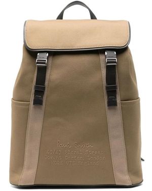 Nadat Paul Smith zijn droom om professioneel wielrenner te worden aan de wilgen hing, richtte hij in 1976 zijn eigen kledingmerk op. Toen hij herstellende was van een fietsongeluk, liet hij zich inspireren door mensen die hij ontmoette. Het maakte zijn overgang naar de mode-industrie verrassend moeiteloos en hij vond al snel zijn beroemde Britse stijl. Smith's erfgoed is volkomen Engels en komt terug in alle aspecten van zijn label. Bovendien worden alle ontwerpen in het Verenigd Koninkrijk gemaakt. Deze serie herenrugzakken van Paul Smith heeft stijlen in wol, leer en duffel. De rugzakken passen naadloos in een slijtvaste garderobe en elk veelzijdig ontwerp is individueel en duurzaam.