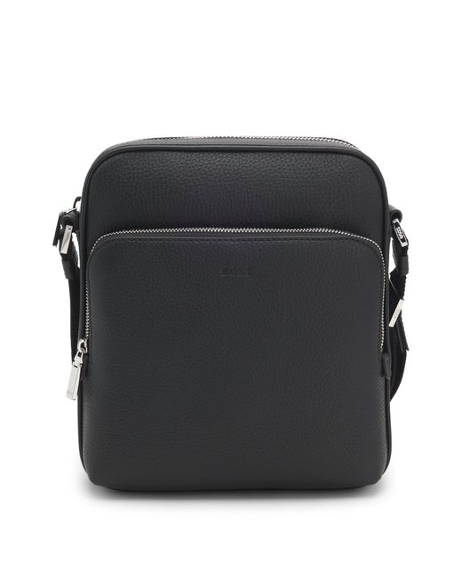 Reportertas Van Italiaans Leer Met Reliëflogo in het zwart voor heren