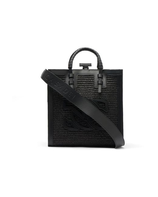 Tassen ,Zwart ,Leer Zwarte Raffia Tote Bag Met Leren Details voor dames