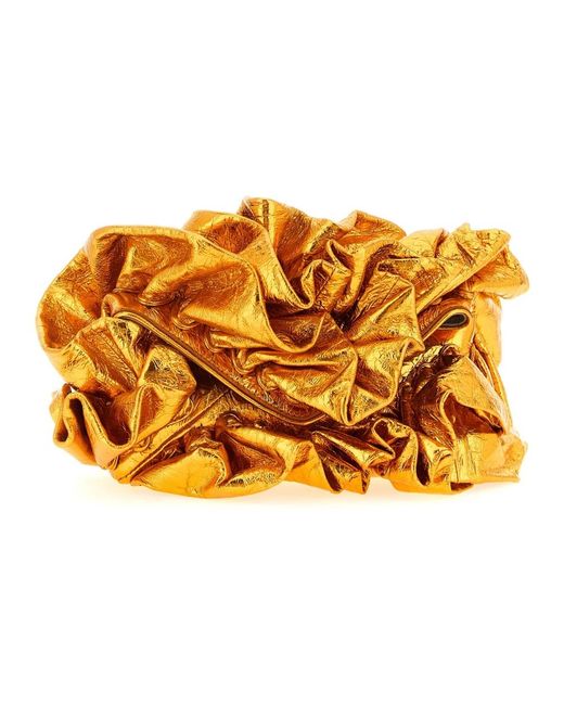 Ruffle Laminated Leather Clutch Bag in het oranje voor dames