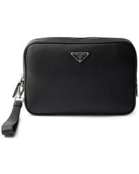 Ga naar FARFETCHKorenbloemblauw saffiano leer getextureerde afwerking driehoekig logo zilverkleurige hardware met gegraveerd logo verstelbare tailleband gespsluiting aan de achterkant ritssluiting buidel met ritssluiting op de voorkant hoofdvak logo-reliëf aan de binnenkant steekvak aan binnenkant Size: OS. Gender: Male. Material:leer. Kleur: blauw