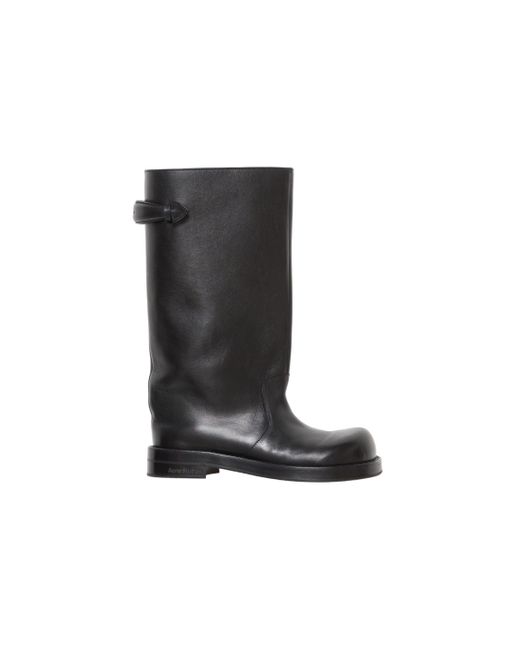 The Women's Boots from Acne Studios are high-heeled, crafted from thick premium leather sourced from a Leather Working Group-certified tannery. The boots feature a chunky welt and a rounded toe with the Acne Studio logo debossed on the back. Combining bold design with refined craftsmanship, these boots offer both comfort and a modern silhouette. With 20 mm heels and 10 cm soles, they are versatile additions to any wardrobe. Size chart: EU. Color: black