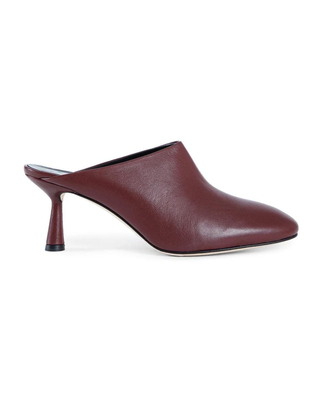 Elevate your style with these aeyde Heeled Mules crafted from supple nappa leather. Featuring an open back, leather and rubber sole, and a 6.5 cm cigarette heel. Perfect for the modern woman. Color: purple