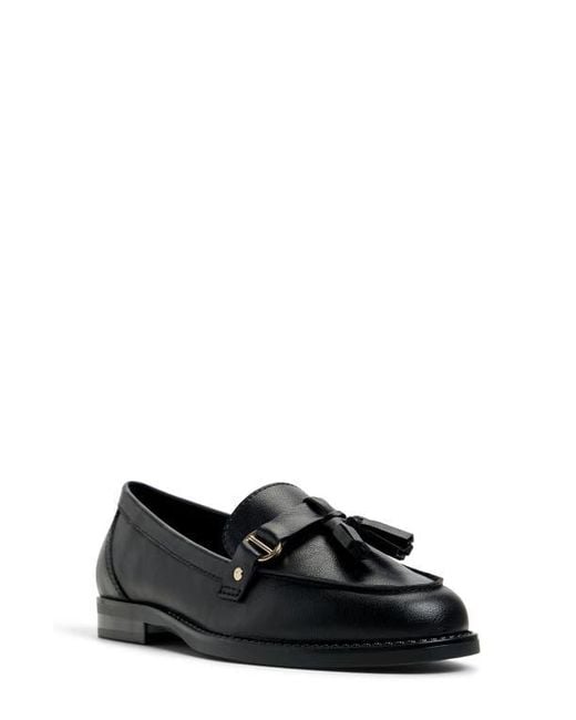 Glinting hardware and decorative tassels accentuate the saddle of a faux-leather loafer cushioned with B.E.D Foam Comfort Technology and set on a subtle heel. Color: black
