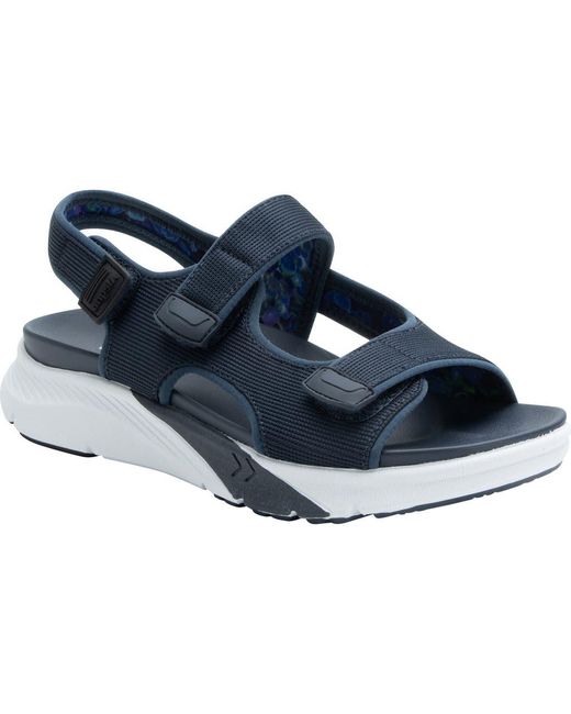 A contoured footbed supported by a ReBounce sole puts comfort into this podiatrist-accepted sandal, while three hook-and-loop straps maximize adjustability. Color: blue